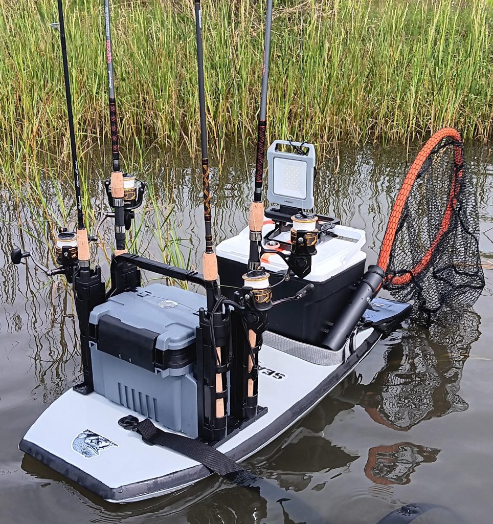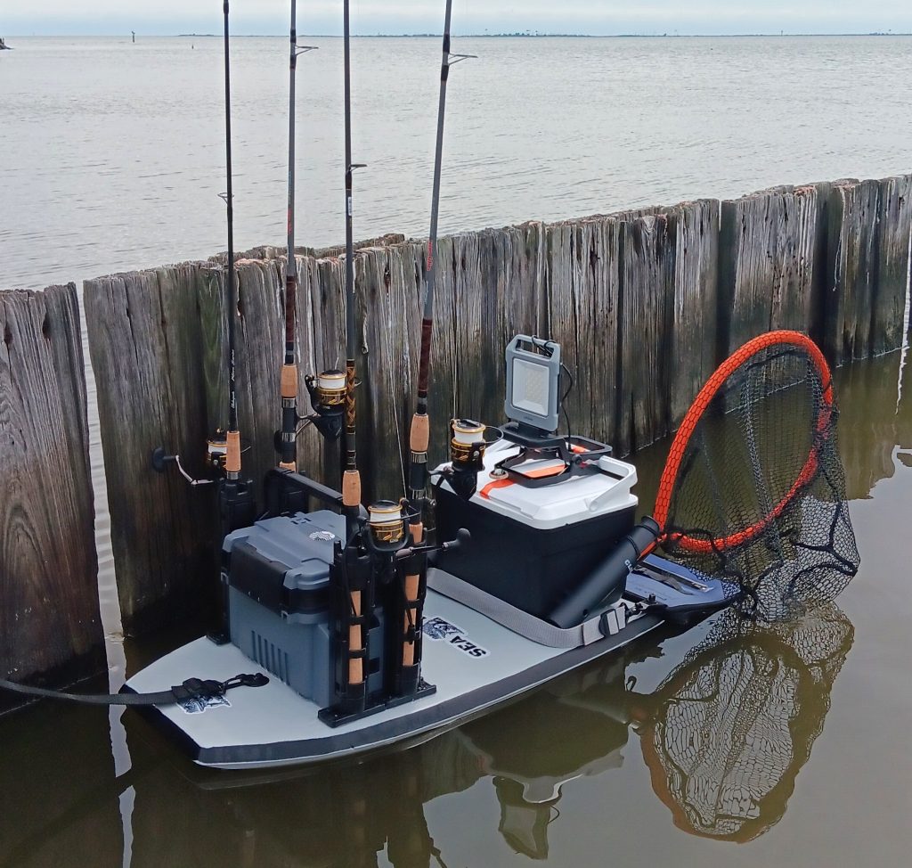 $199.00 Basic Model Includes: Tow Leash with Carabiner, Board, Tackle Box w/2 Rod Holders, Cooler/Dry Storage w/ 2 Rod holders for Net and Boga Grips.