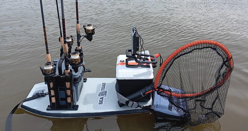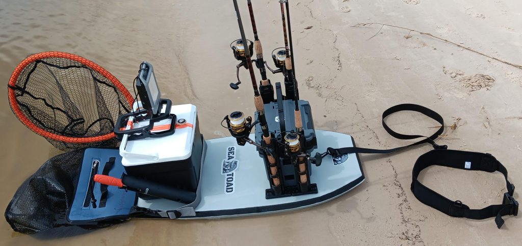 Finally, a high-quality tow-behind device that eliminates ALL of those frustrations for wade fisherman and giggers alike. Now a product that is easy to use, easy to transport, organized, highly functional, durable, well made, and affordable… Welcome to world of wade fishing with the Sea-Toad. A “must have” in the serious fishermen’s arsenal of tools!